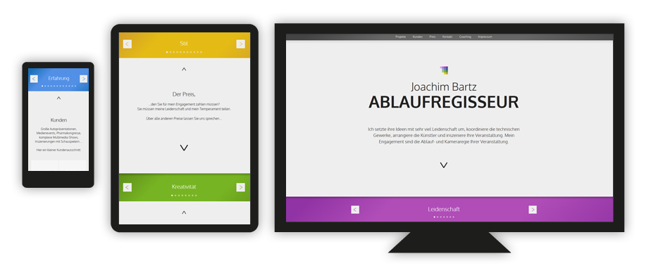 Corporate Identity und Responsive Webdesign im Single-Page-Layout für Ablaufregisseur Joachim Bartz