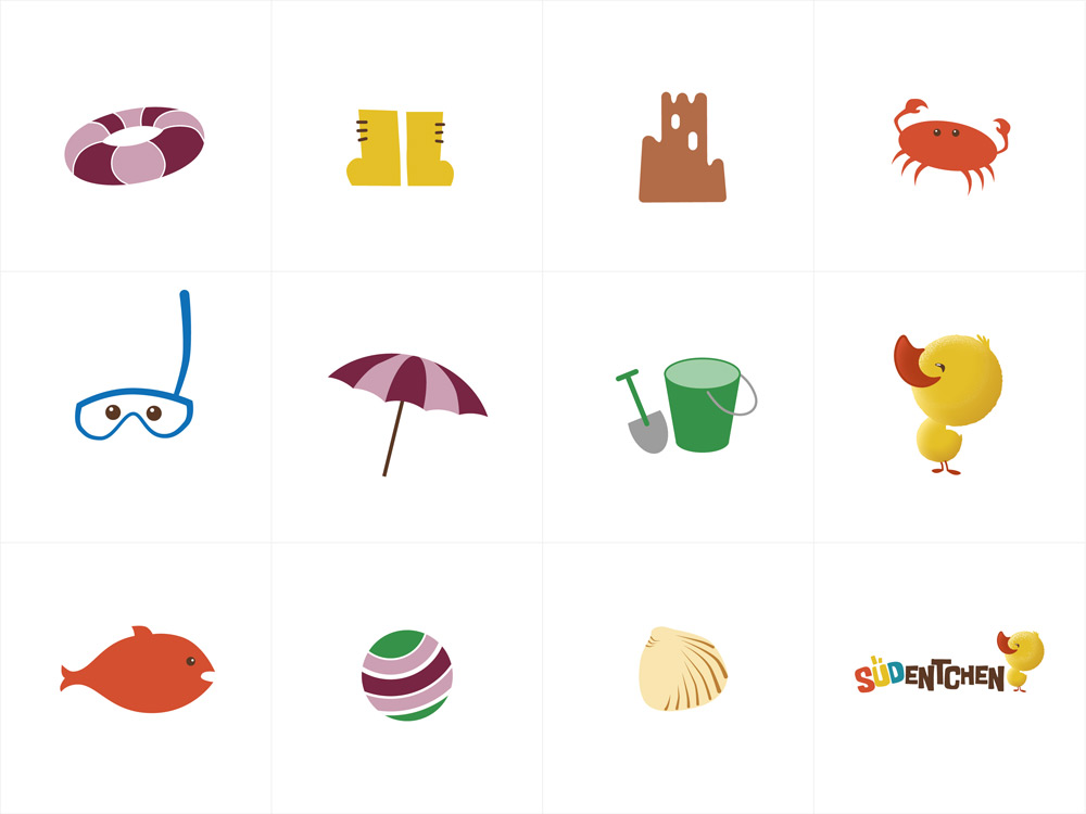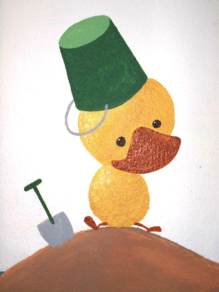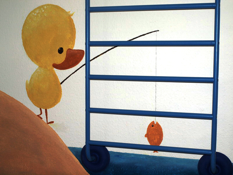 Logoentwicklung, Geschäftsausstattung, Leitsystem zu Bettchen und Fächlein und ein paar süße Wand-Enten für die Kita in der Südendstraße.